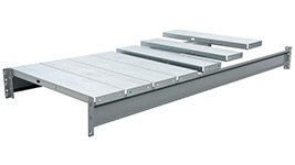 • Конструкция балки позволяет использовать 2 вида настила: металлический (наборные полки, изготовленные из оцинкованного металла) и ДСП толщиной 16 мм